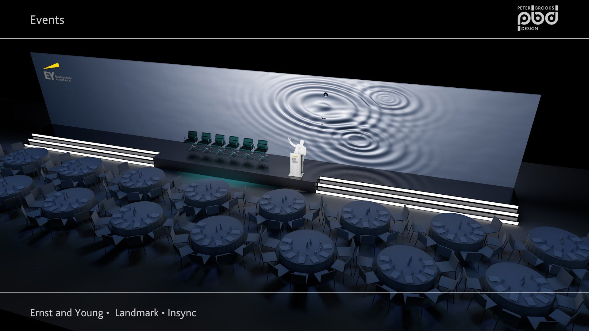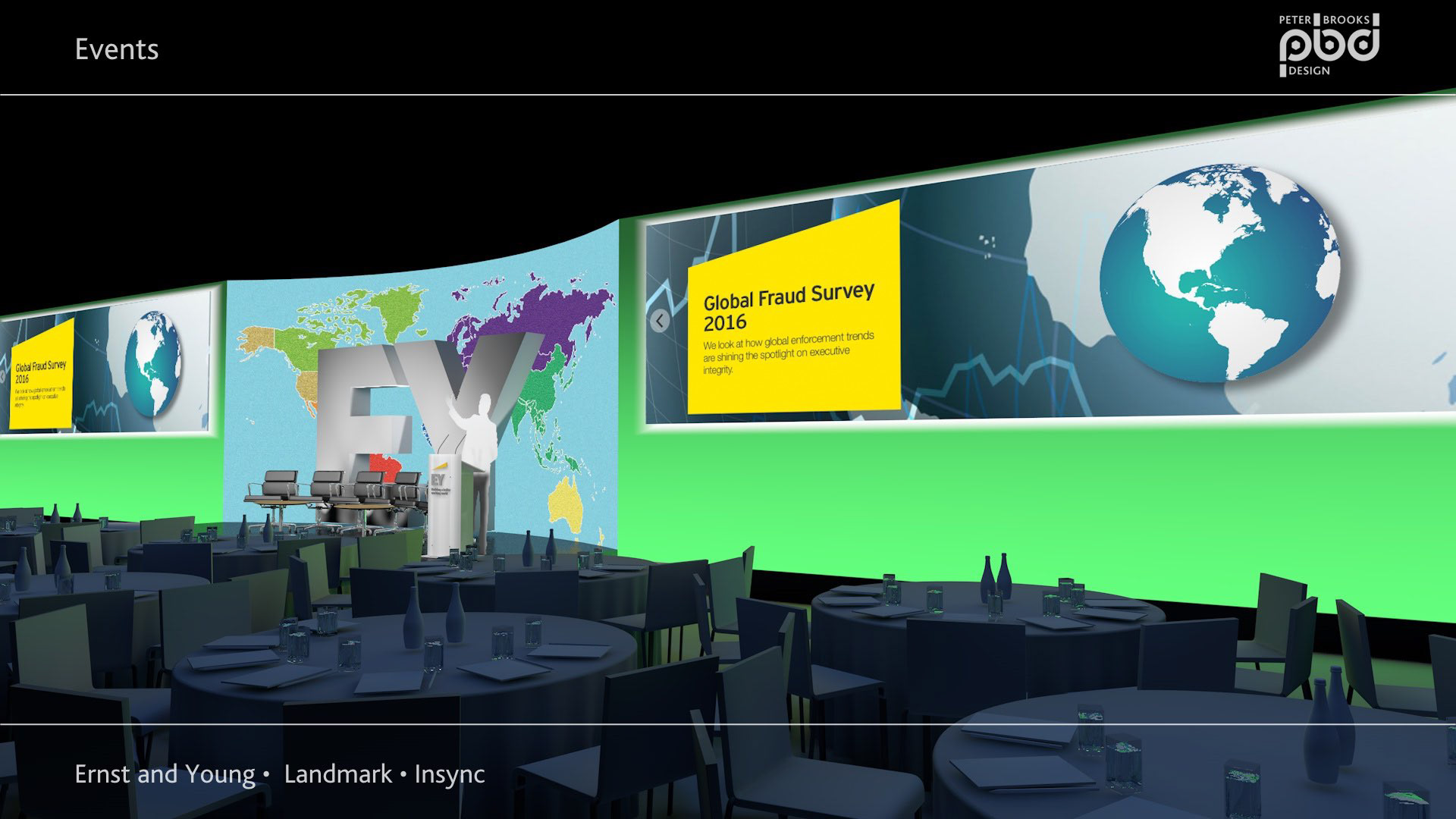 Concepts for a conference set for Ernst and Young at the Landmark Hotel, London