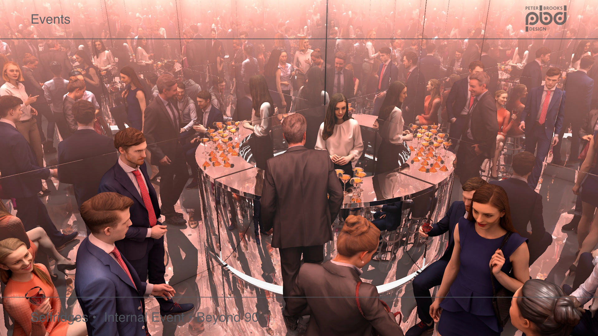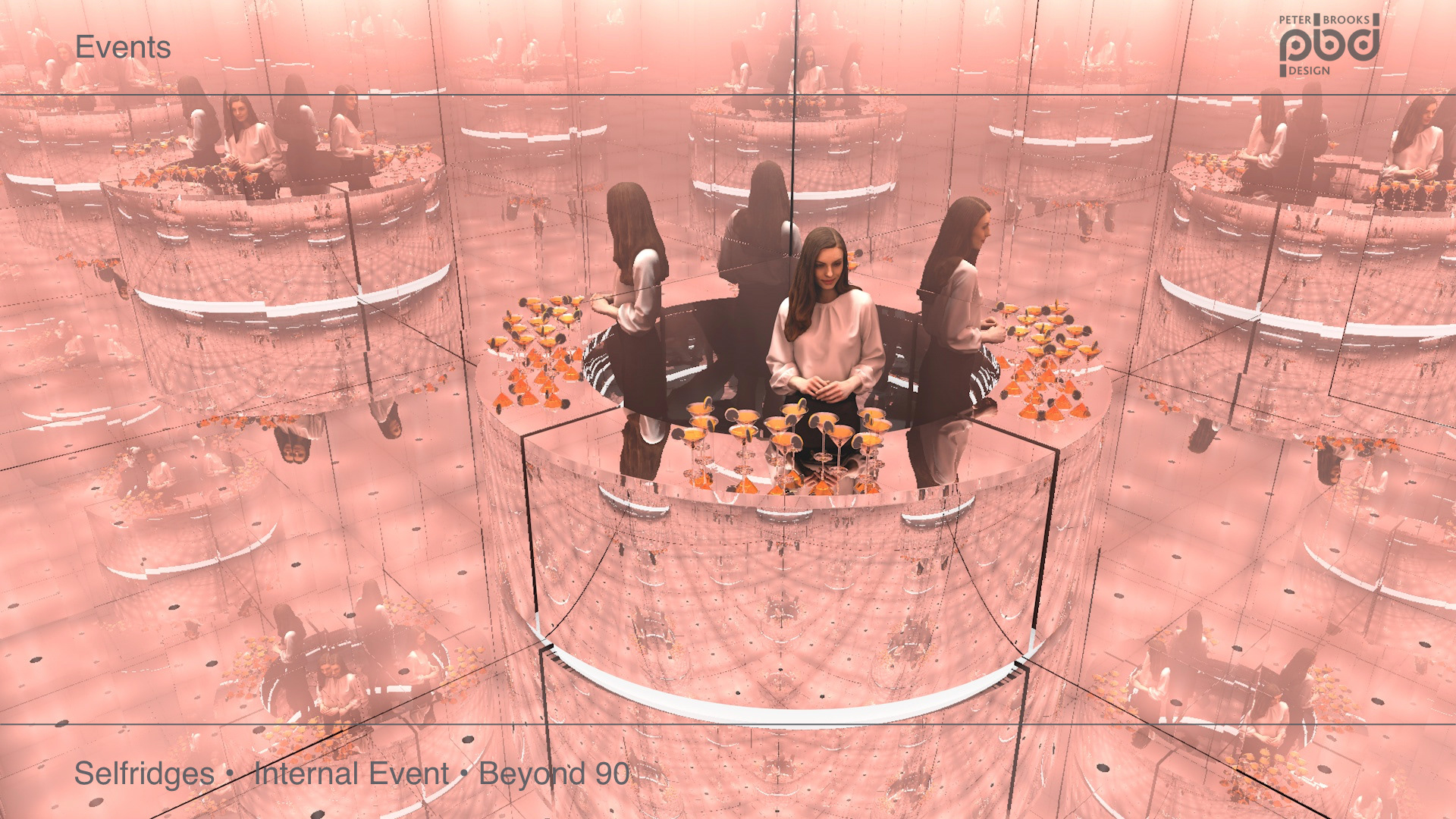 Build a 3.6m cube, mirror every surface of the interior, add a bar and you have a really trippy place. That's what Selfridges wanted for an event at the London Store. We had to visualise it.